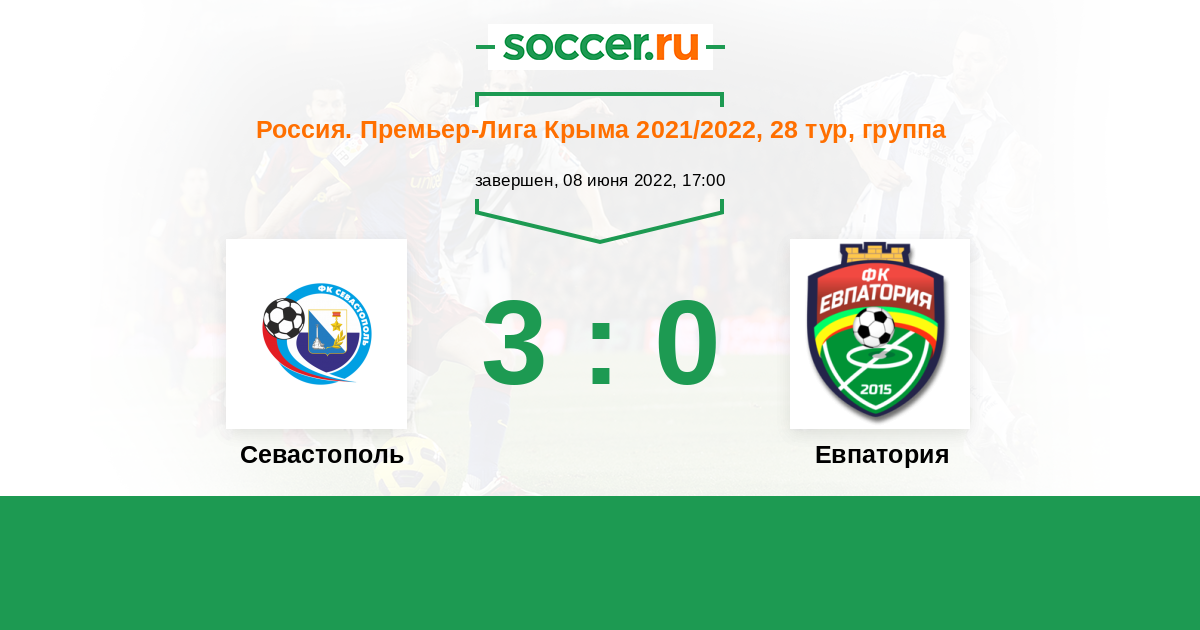 Россия. Премьер-Лига Крыма 08.06.2022 Севастополь Логотип футбольный клуб Севастополь 3:0 Логотип футбольный клуб Евпатория Евпатория