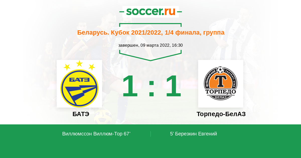 Протокол матча БАТЭ против Торпедо-БелАЗ
