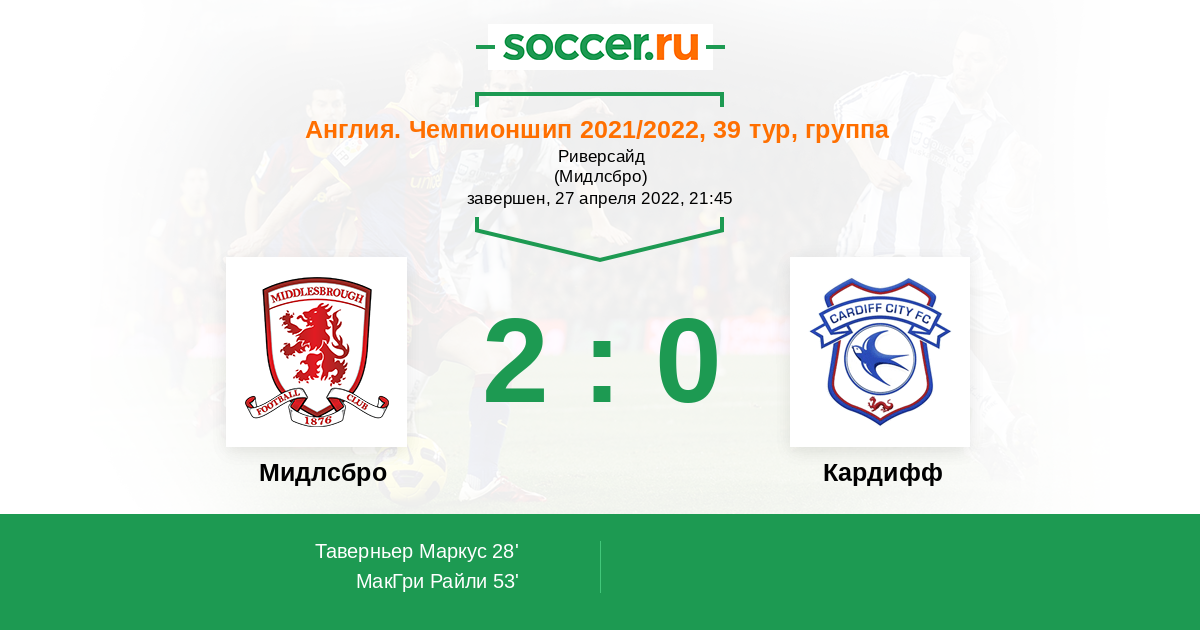 Протокол матча Мидлсбро против Кардифф