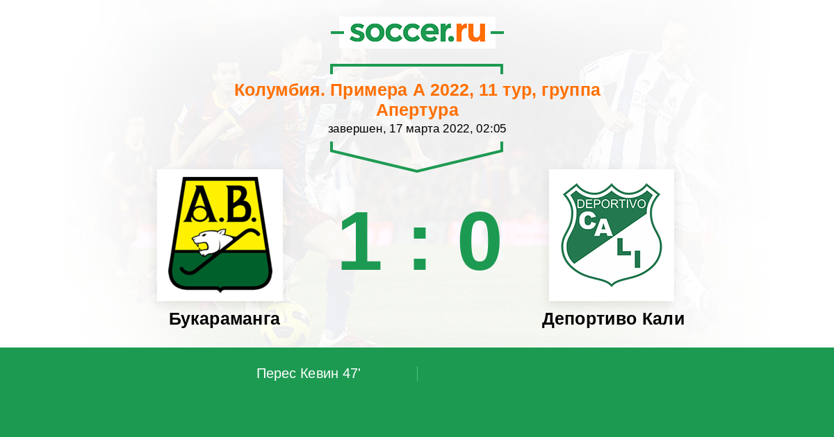 Протокол матча Букараманга против Депортиво Кали