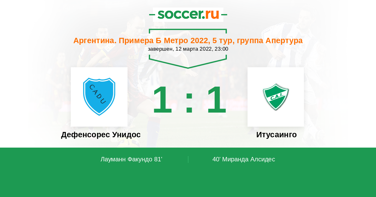 Протокол матча Дефенсорес Унидос против Итусаинго