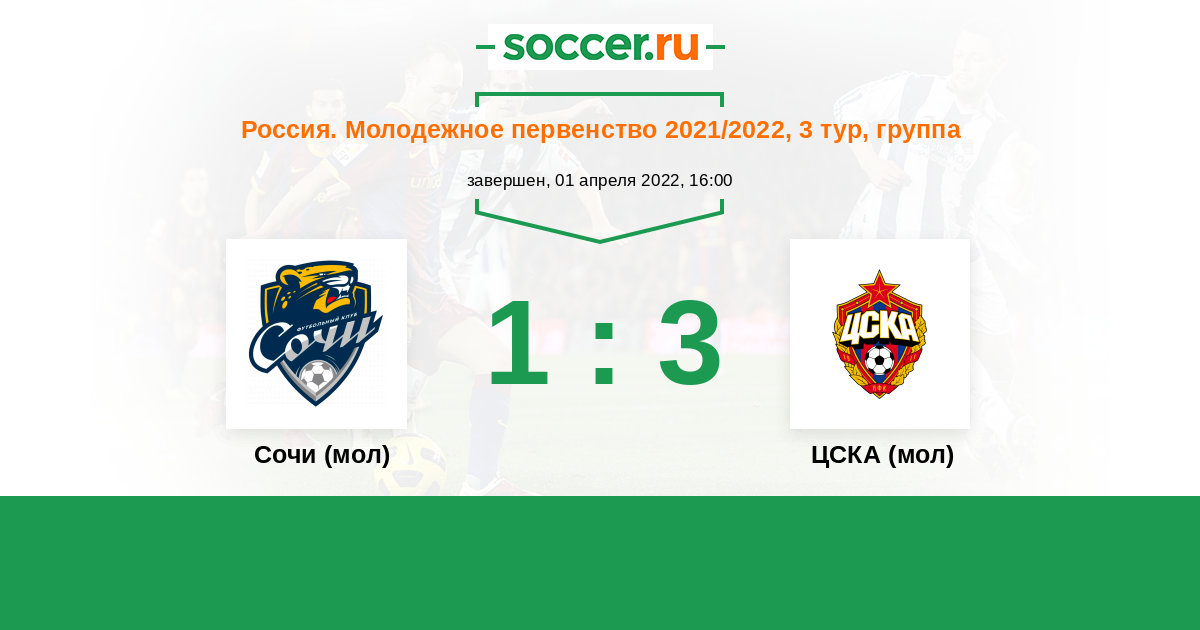 История матча Сочи (мол) против ЦСКА (мол)