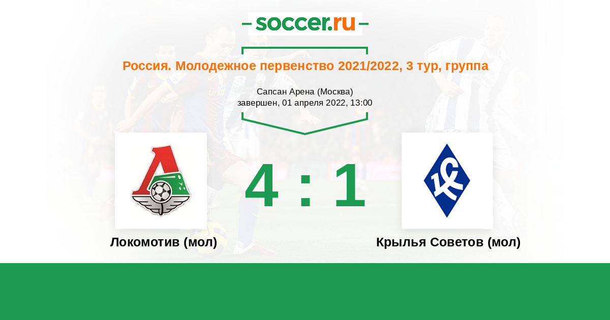 История матча Локомотив (мол) против Крылья Советов (мол)