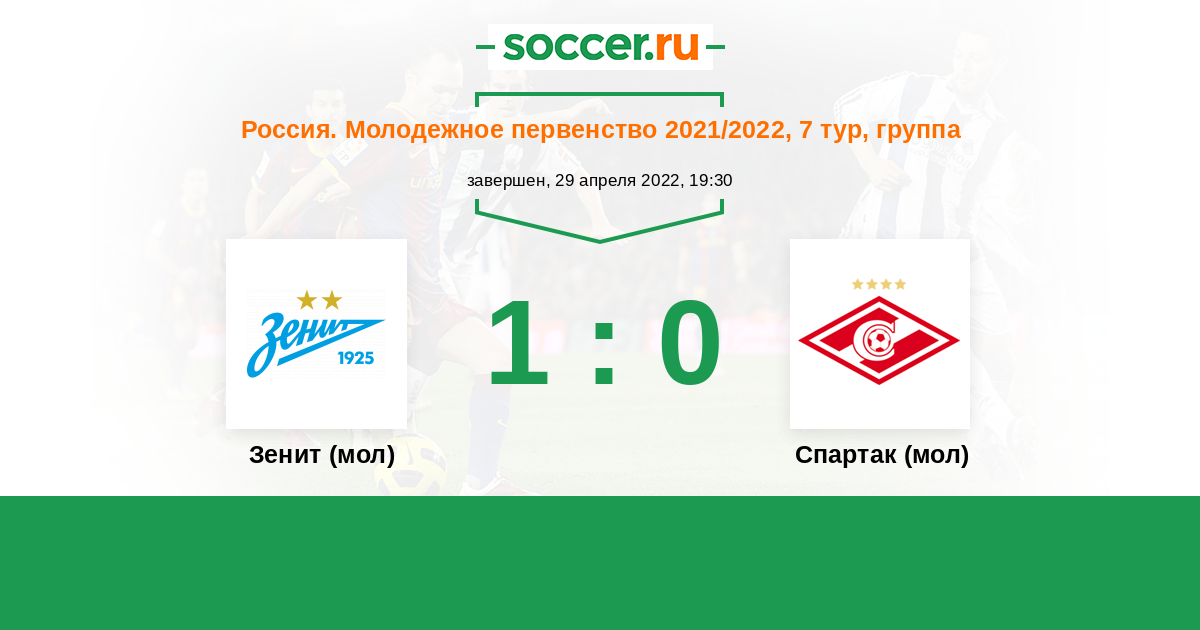 Россия. Премьер-Лига U21 30.03.2012 Спартак (мол) Логотип футбольный клуб Спартак (мол) (Москва) 1:1 Логотип футбольный клуб Зенит (мол) (Санкт-Петербург) Зенит (мол)