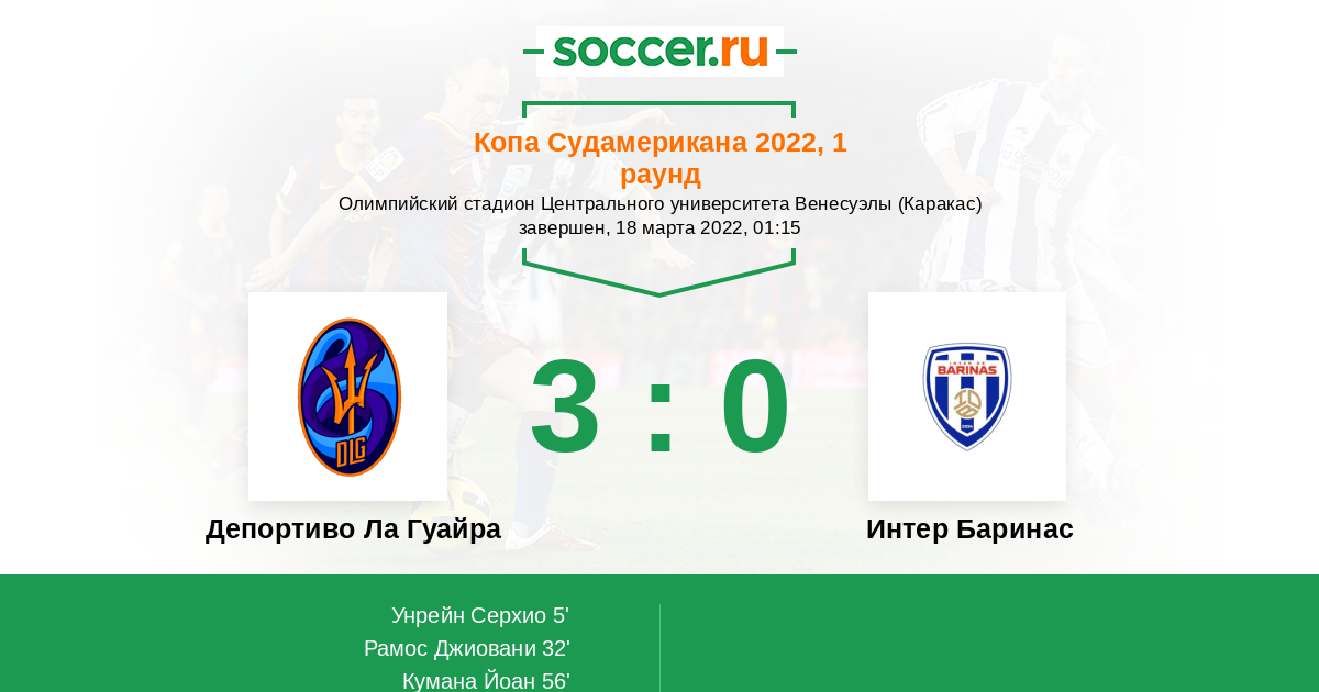 Протокол матча Депортиво Ла Гуайра против Интер Баринас