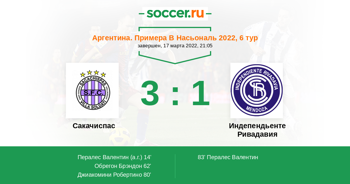 Протокол матча Сакачиспас против Индепендьенте Ривадавия