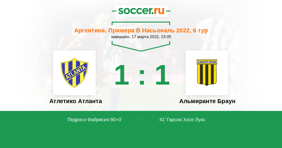 Протокол матча Атлетико Атланта против Альмиранте Браун