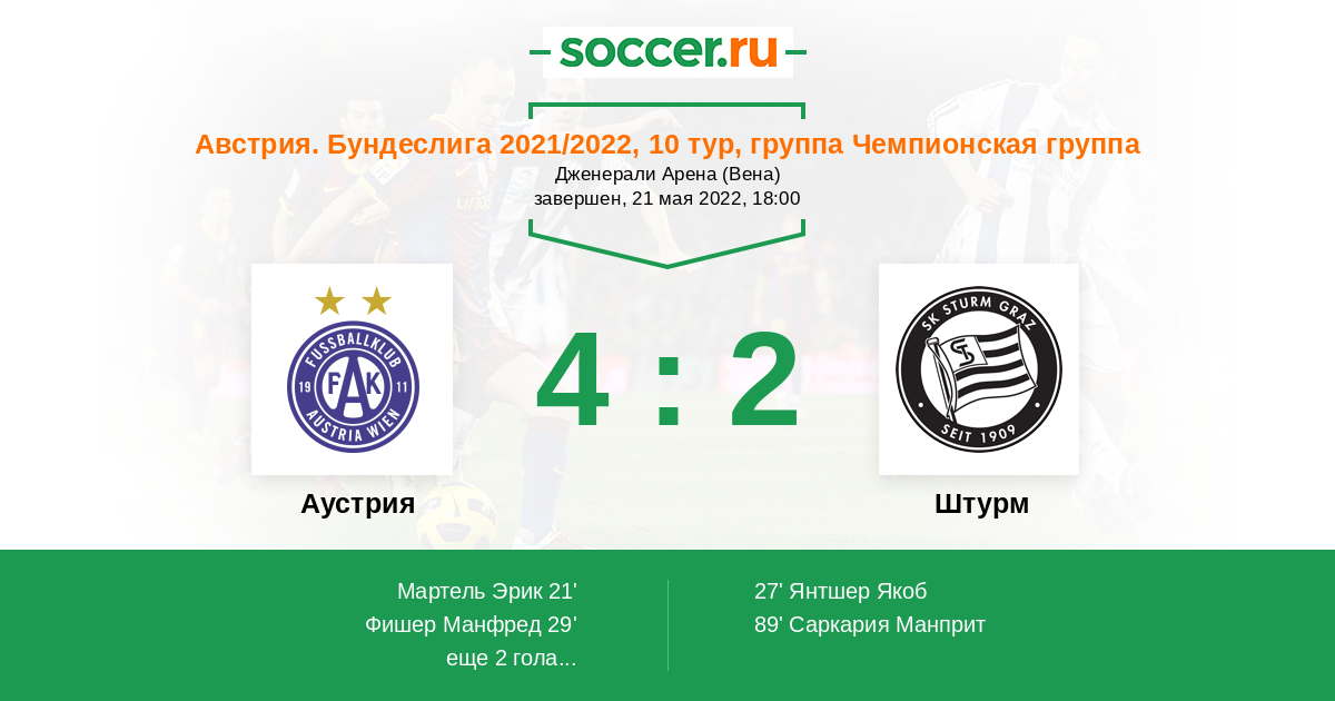 Протокол матча Аустрия против Штурм