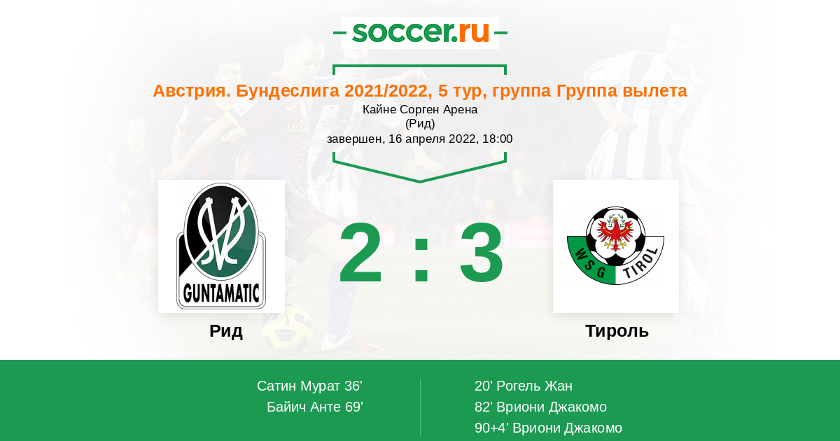 Протокол матча Рид против Тироль