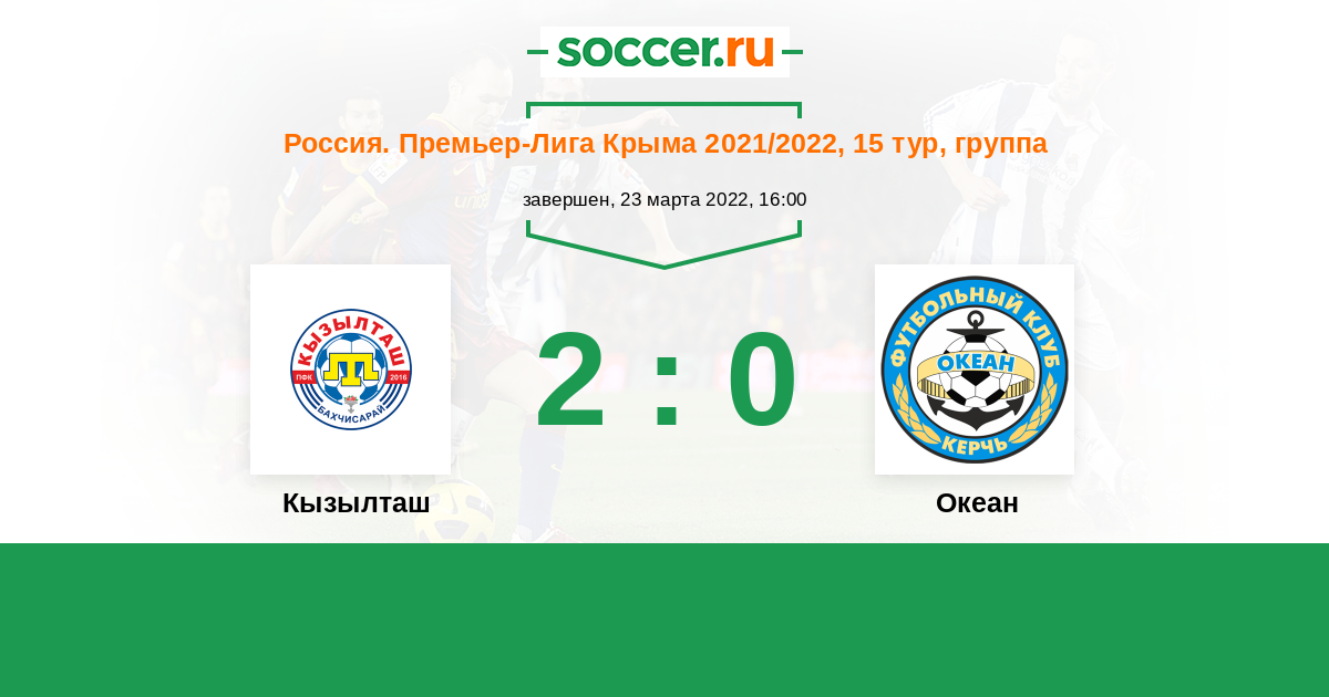 Россия. Премьер-Лига Крыма 27.04.2022 Океан Логотип футбольный клуб Океан (Керчь) 0:6 Логотип футбольный клуб Кызылташ (Бахчисарай) Кызылташ