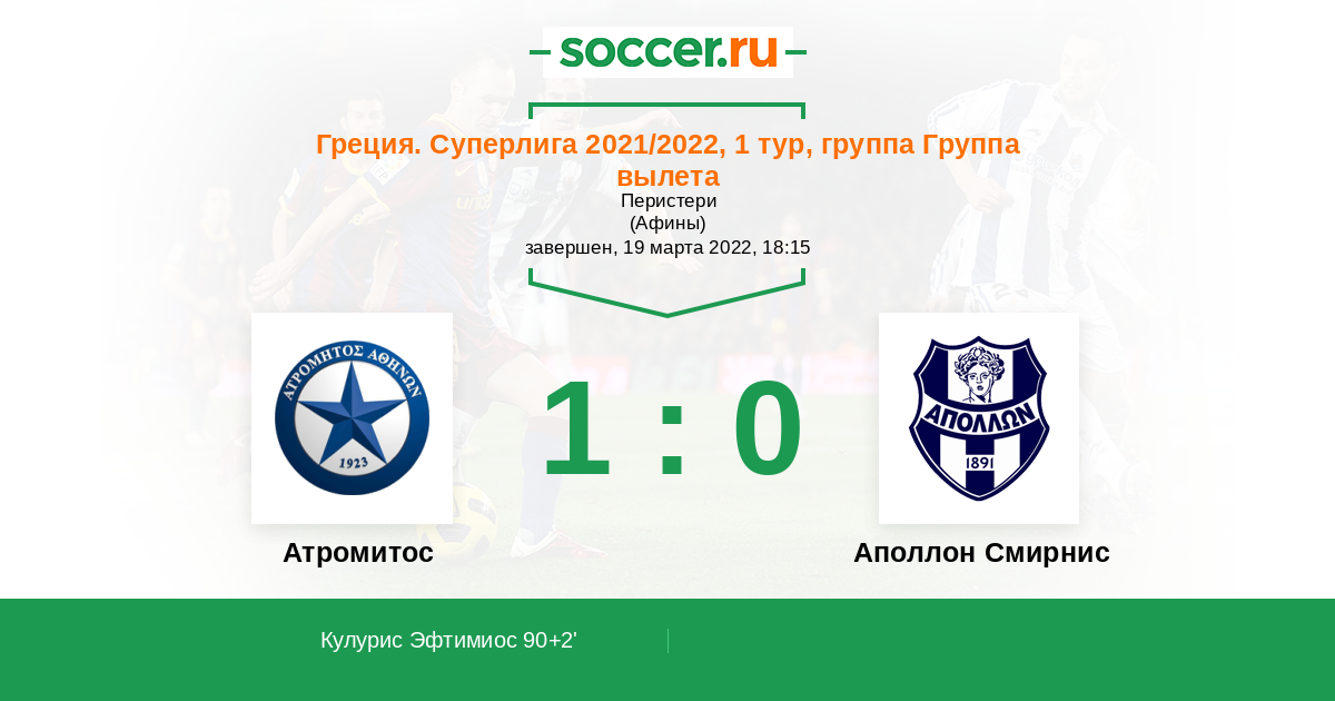 Протокол матча Атромитос против Аполлон Смирнис