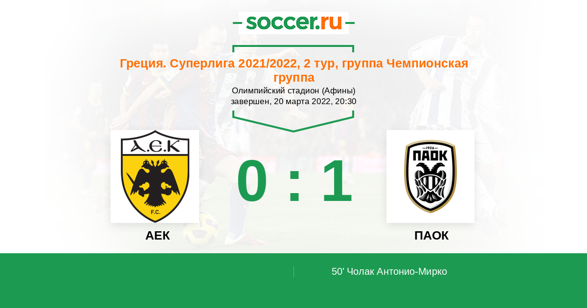 Протокол матча АЕК против ПАОК
