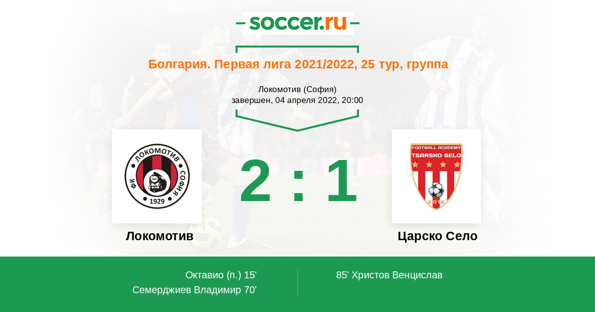 Протокол матча Локомотив против Царско Село