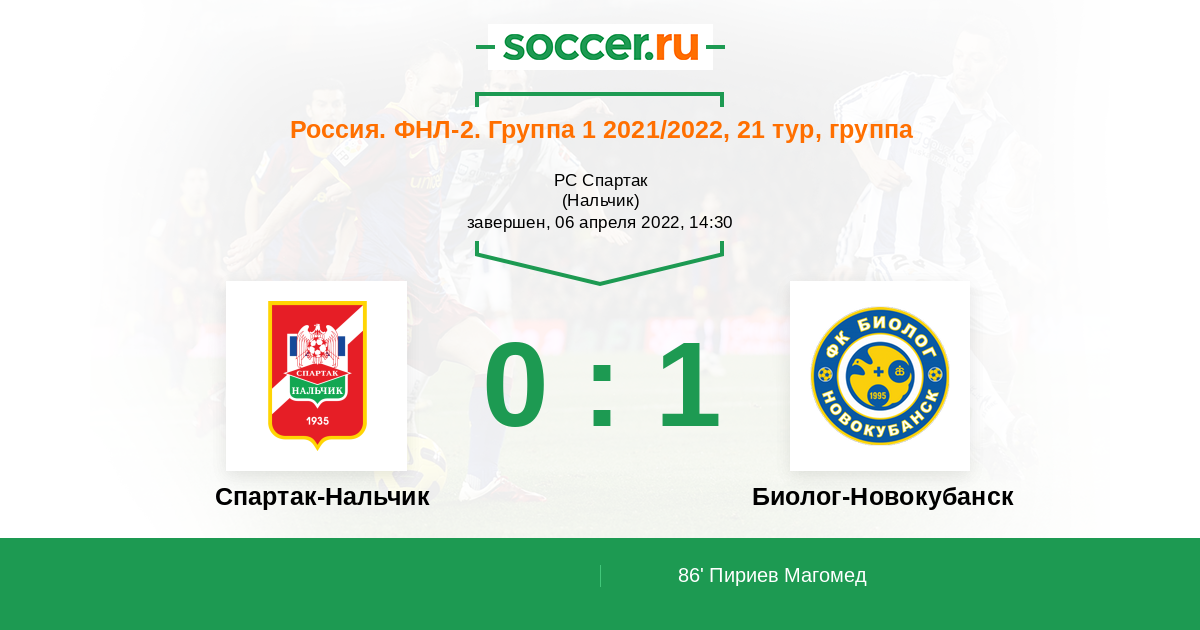 Протокол матча Спартак-Нальчик против Биолог-Новокубанск