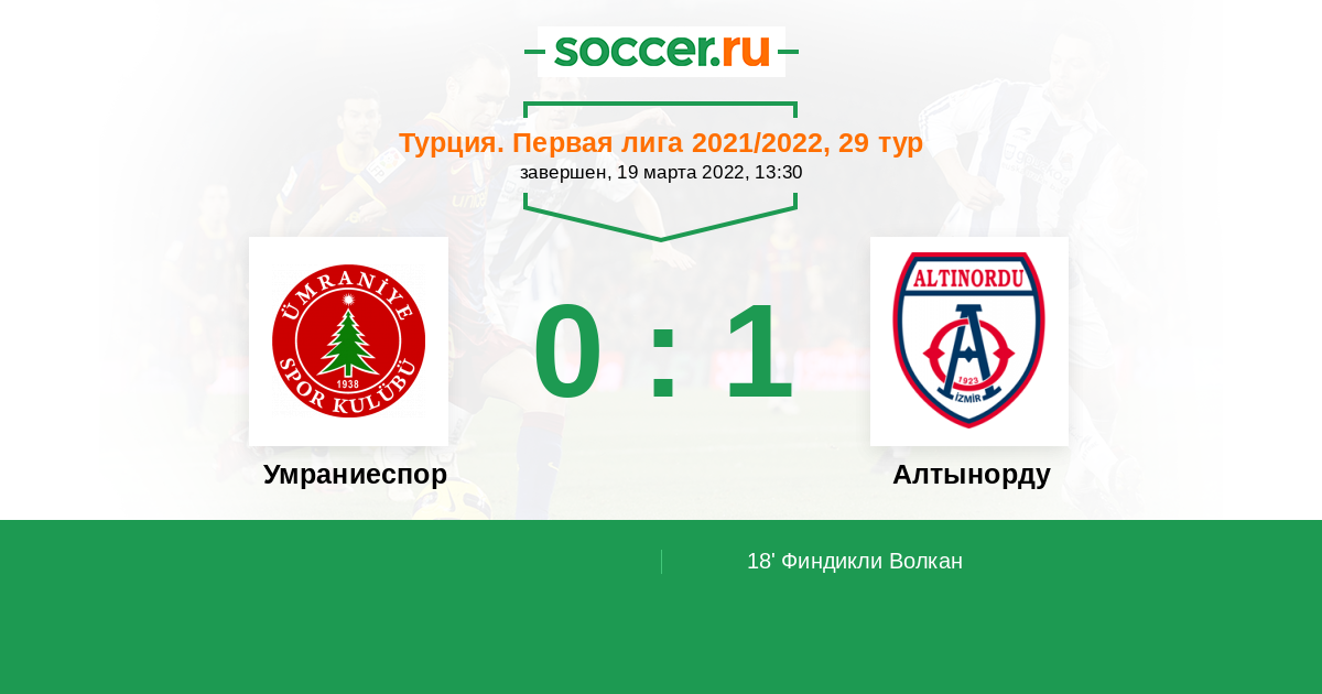 18' (0:1) Финдикли Волкан (2) (Озкан Сереф (7))
