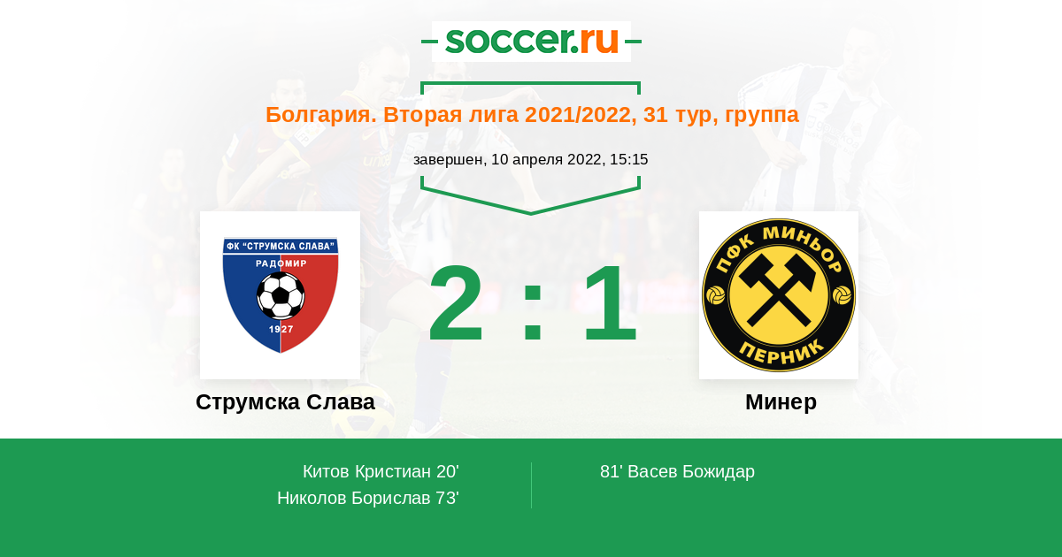 Протокол матча Струмска Слава против Минер