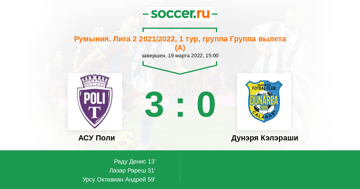 Протокол матча АСУ Поли против Дунэря Кэлэраши