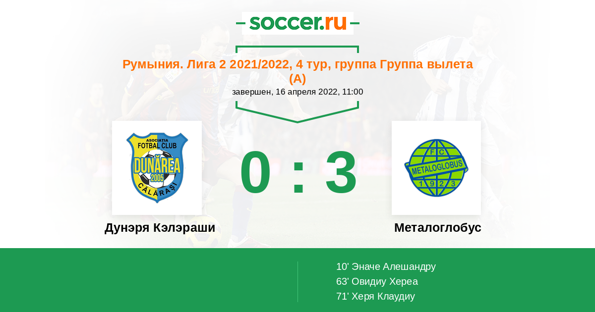 Протокол матча Дунэря Кэлэраши против Металоглобус