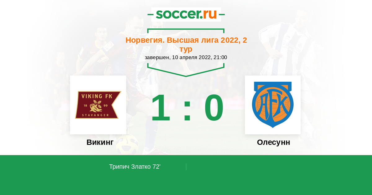 72' (1:0) Трипич Златко (10) (Бьоршол Сондре (18))