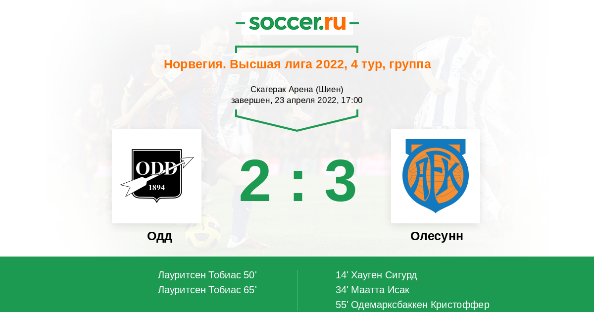 Протокол матча Одд против Олесунн