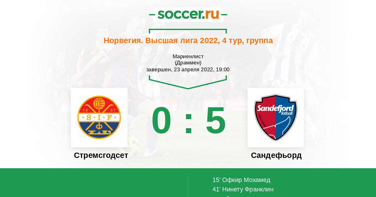 Протокол матча Стремсгодсет против Сандефьорд