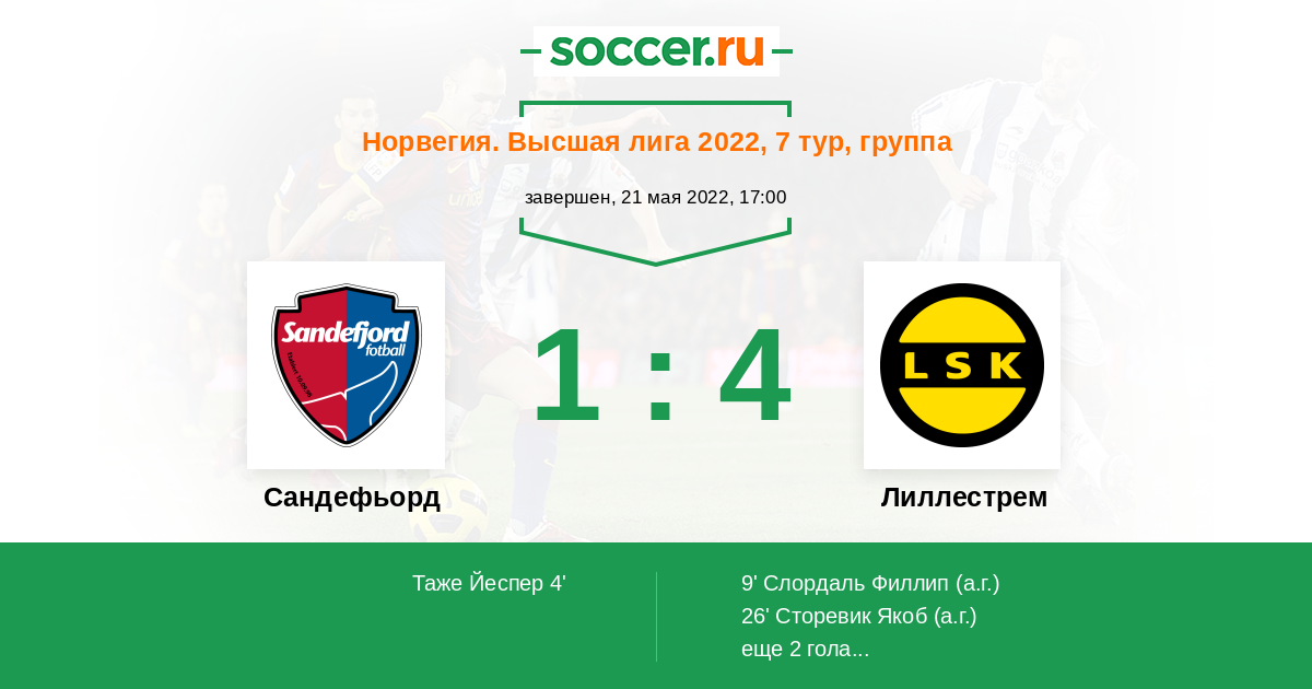 9' (1:1) Автогол Слордаль Филлип (21)