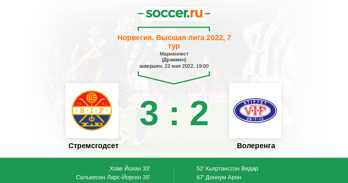 Протокол матча Стремсгодсет против Волеренга