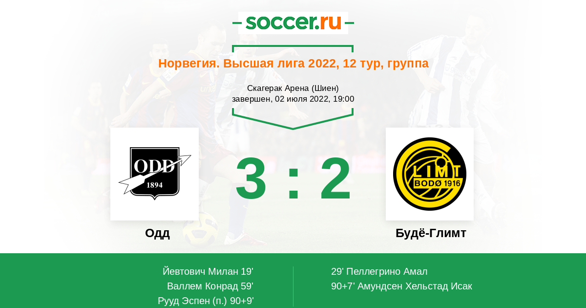 Протокол матча Одд против Будё-Глимт