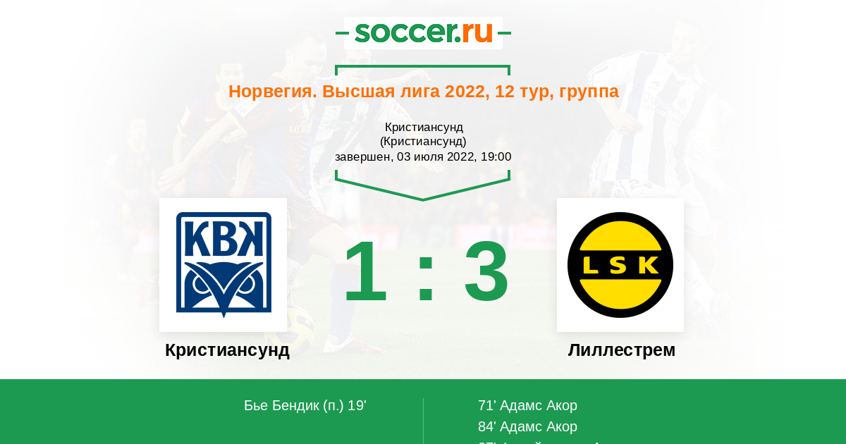 Протокол матча Кристиансунд против Лиллестрем