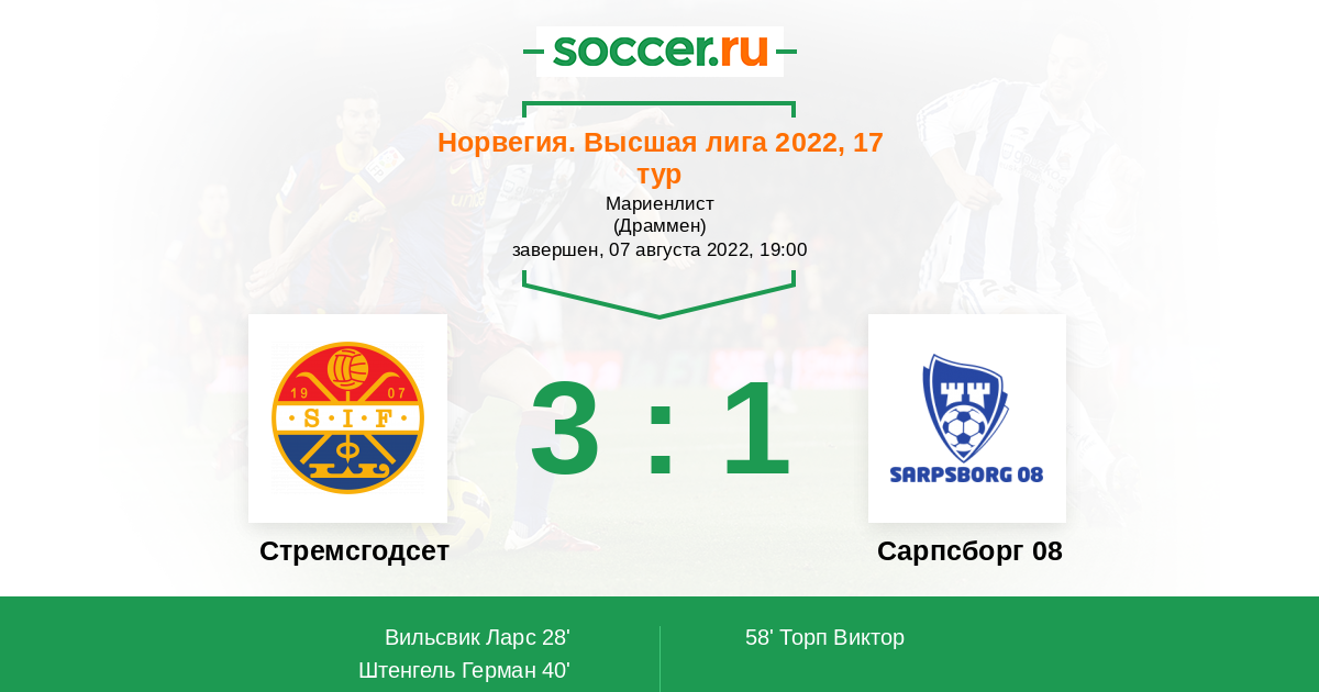 Протокол матча Стремсгодсет против Сарпсборг 08
