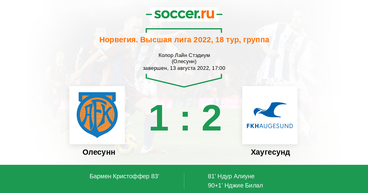 Протокол матча Олесунн против Хаугесунд