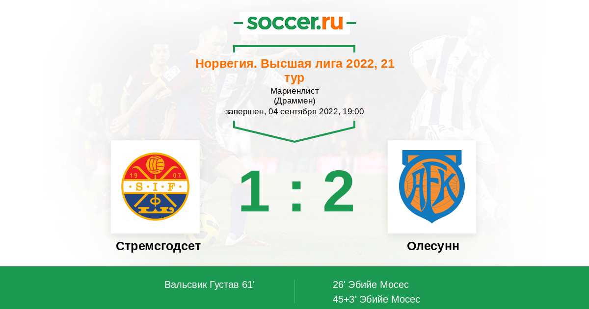 26' (0:1) Эбийе Мосес (21) (Нордли Симен (11))