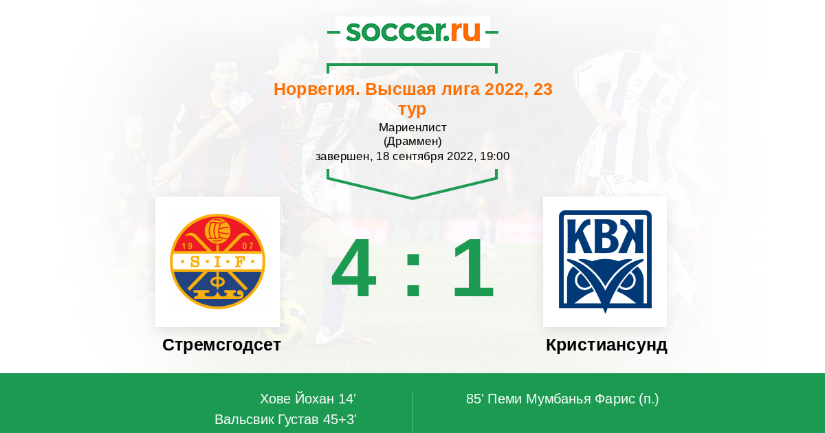 Протокол матча Стремсгодсет против Кристиансунд