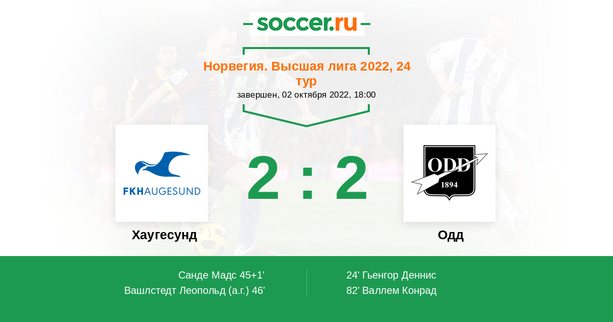 Протокол матча Хаугесунд против Одд