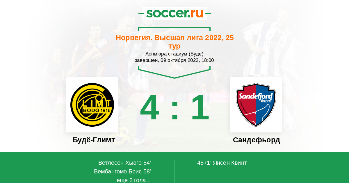 Протокол матча Будё-Глимт против Сандефьорд