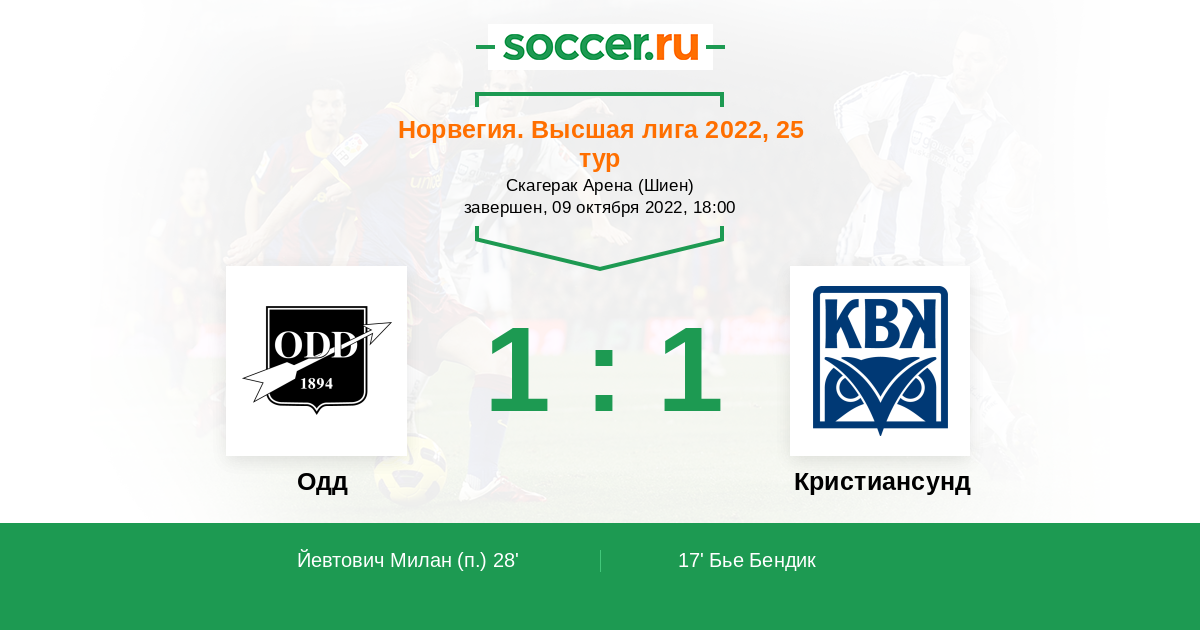 17' (0:1) Бье Бендик (13) (Картум Сандер (8))