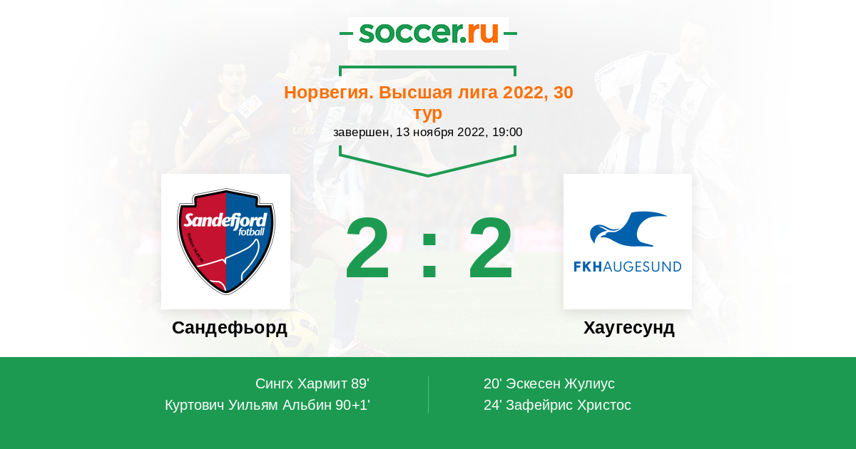 Протокол матча Сандефьорд против Хаугесунд