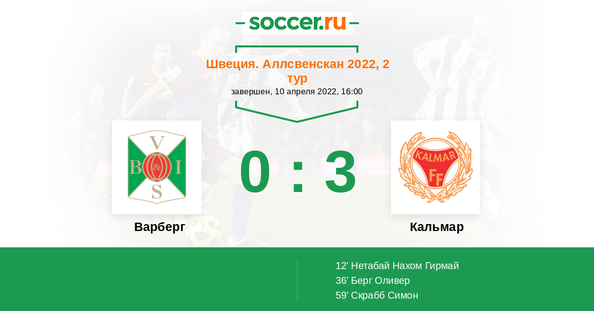 Протокол матча Варберг против Кальмар