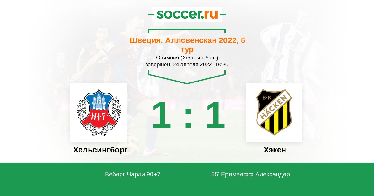 Протокол матча Хельсингборг против Хэкен