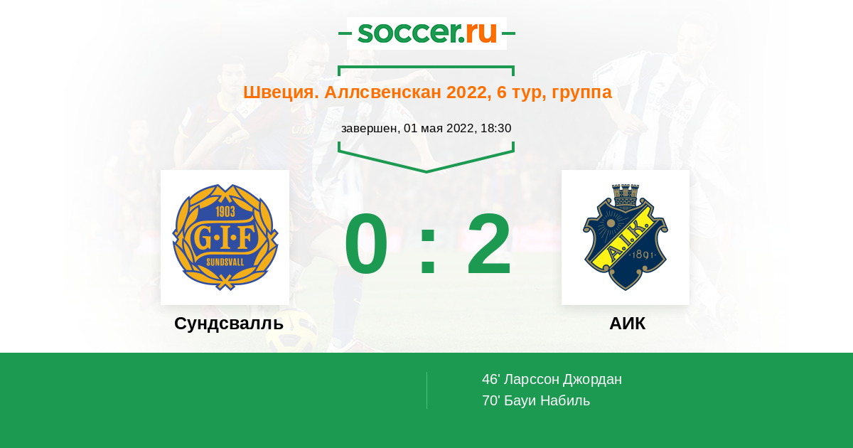 70' (0:2) Бауи Набиль (10) (Ларссон Джордан (19))