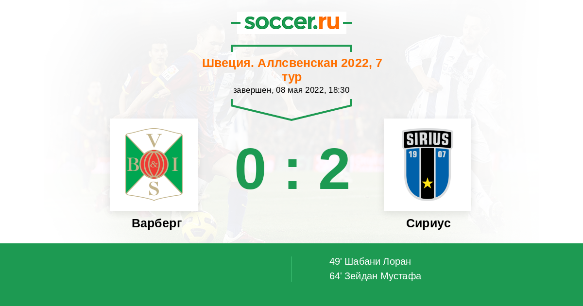 Протокол матча Варберг против Сириус