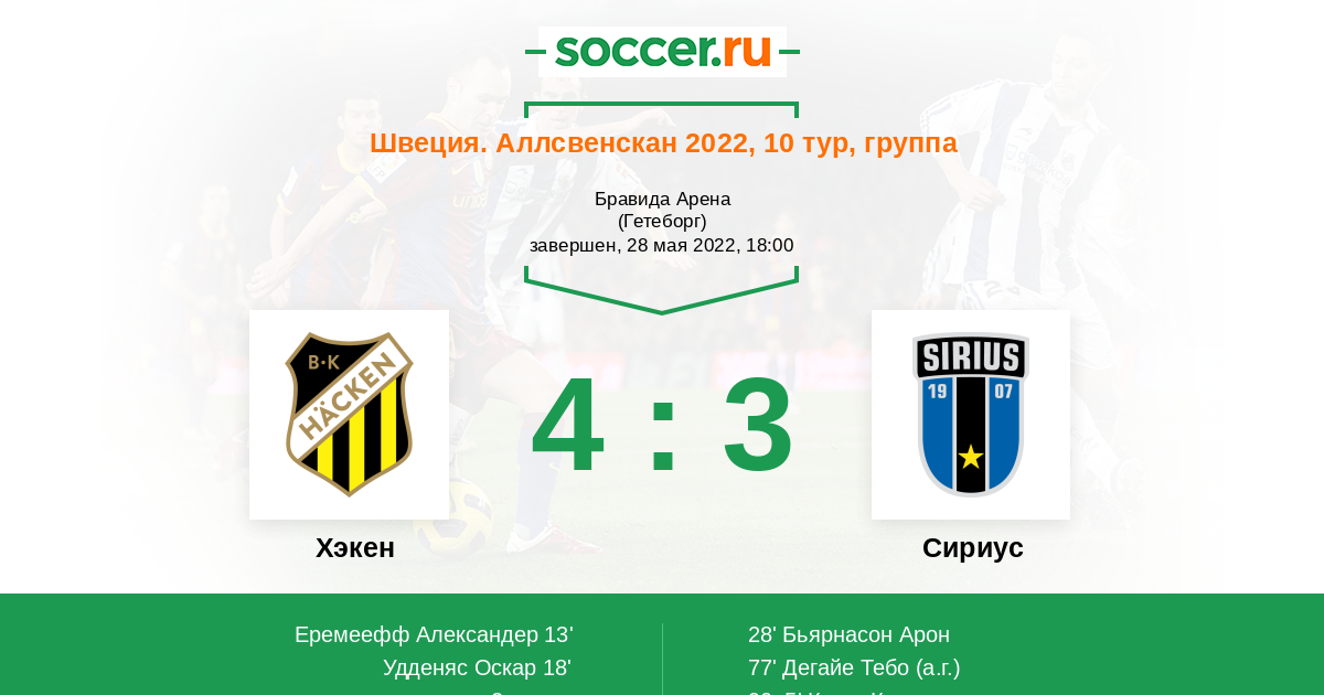Протокол матча Хэкен против Сириус