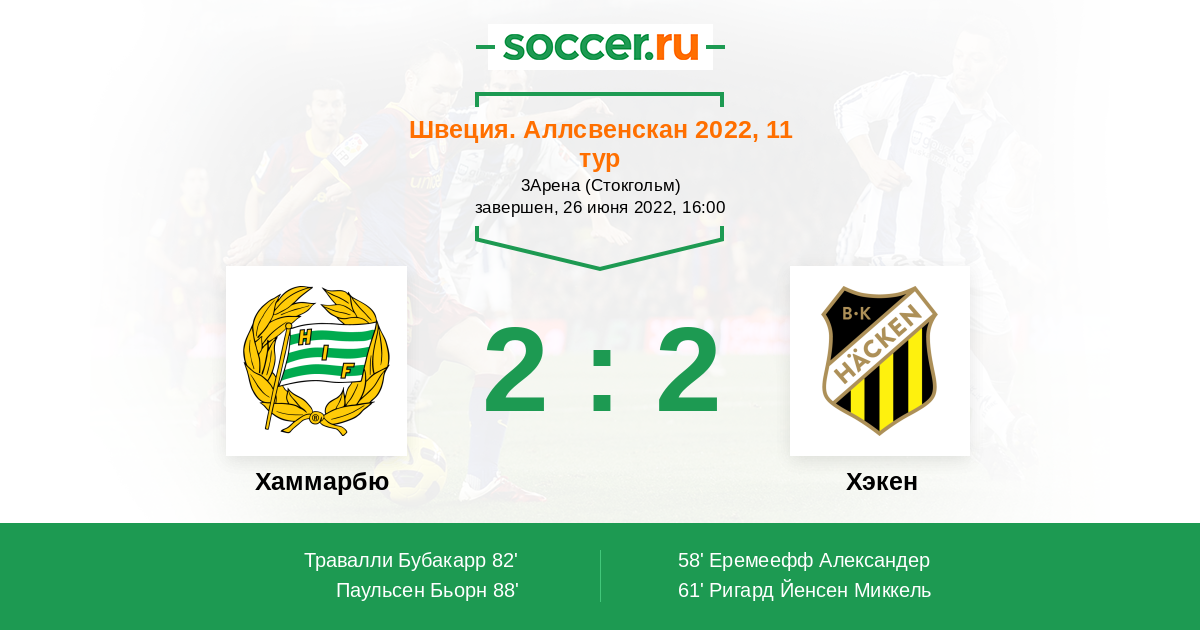 Протокол матча Хаммарбю против Хэкен