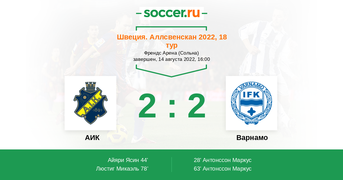 Протокол матча АИК против Варнамо
