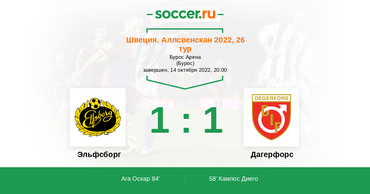 84' (1:1) Ага Оскар (14) (Странд Симон (20))