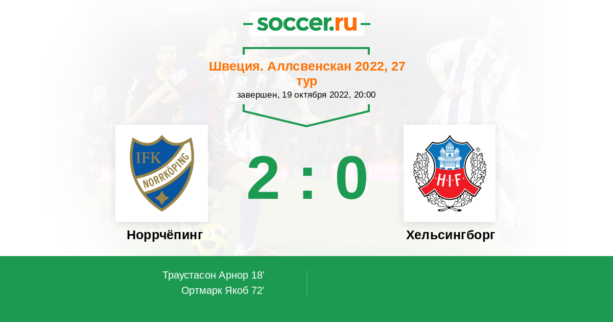 Протокол матча Норрчёпинг против Хельсингборг