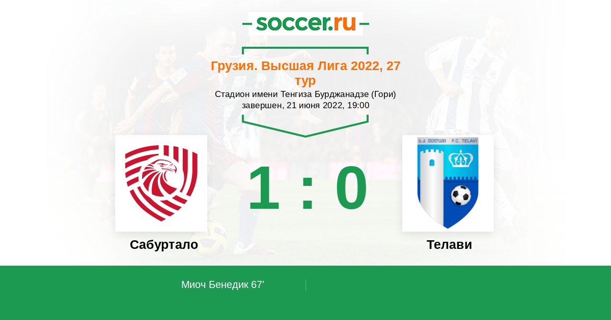 Протокол матча Сабуртало против Телави