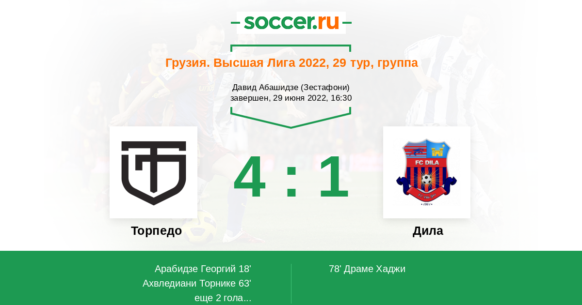 18' (1:0) Арабидзе Георгий (17) (Цинцадзе Мате (6))