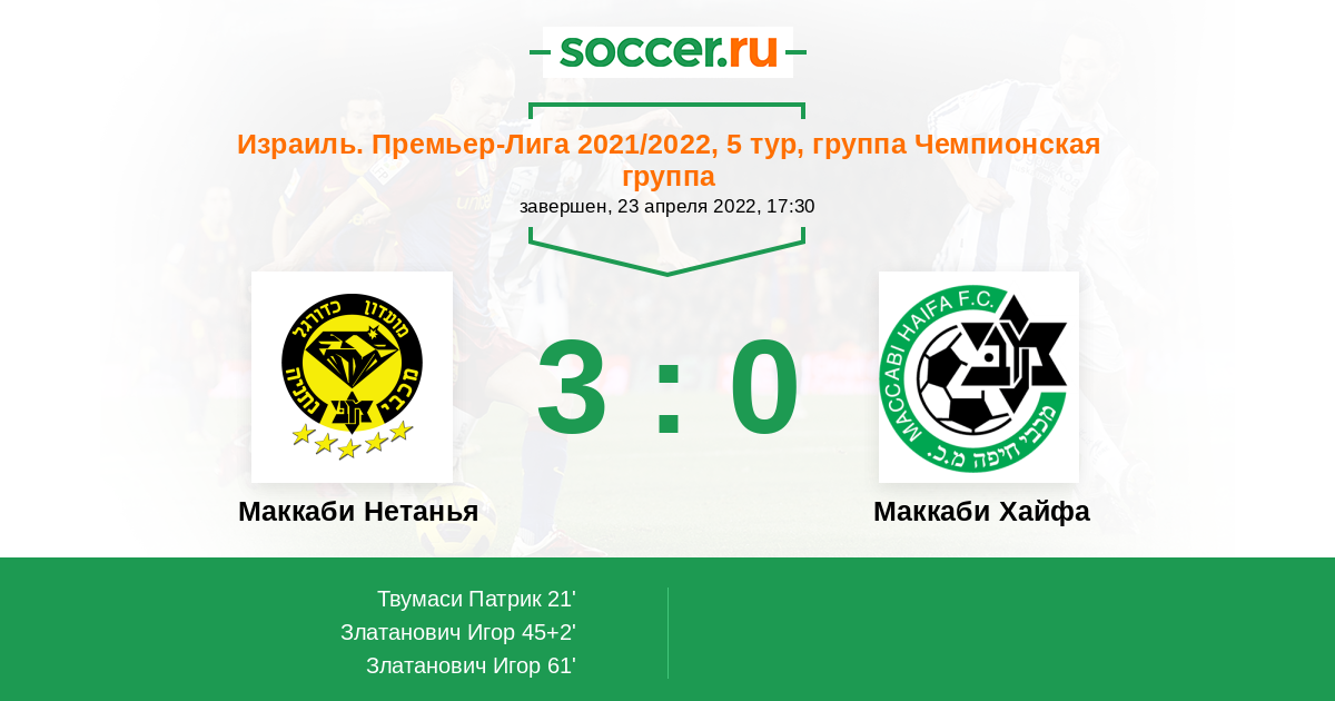 Протокол матча Маккаби Нетанья против Маккаби Хайфа