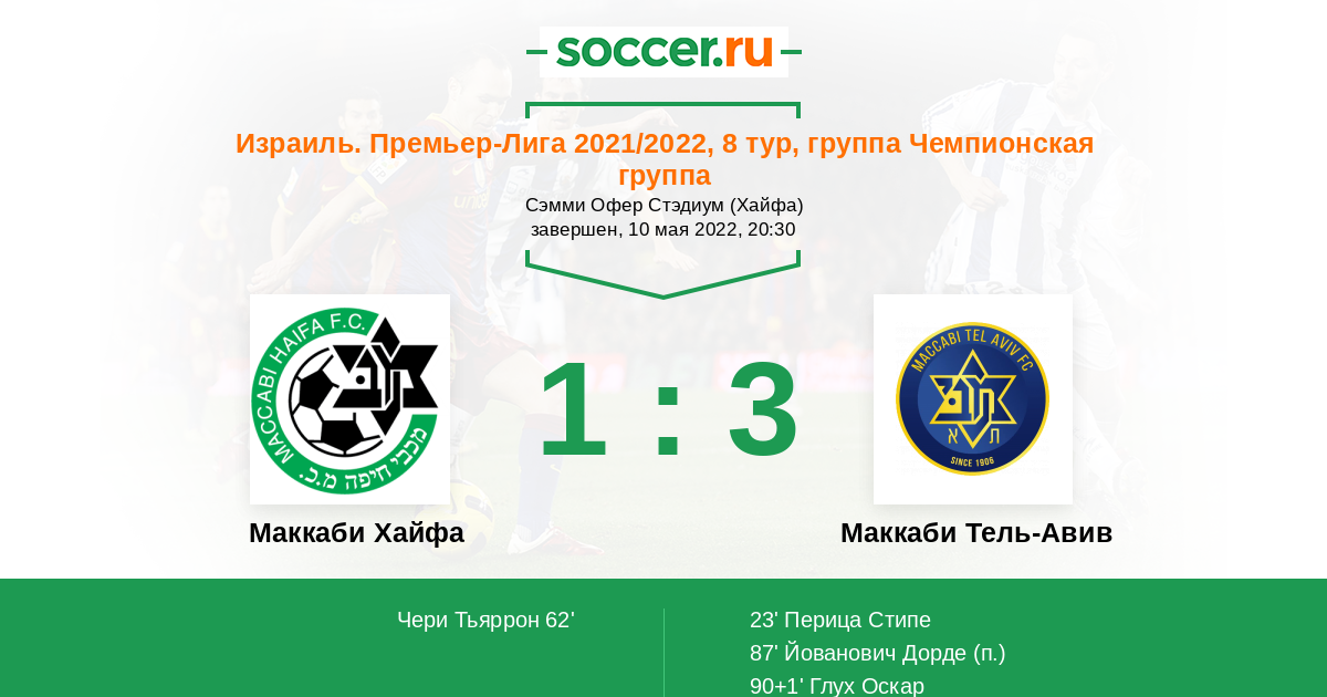 Протокол матча Маккаби Хайфа против Маккаби Тель-Авив